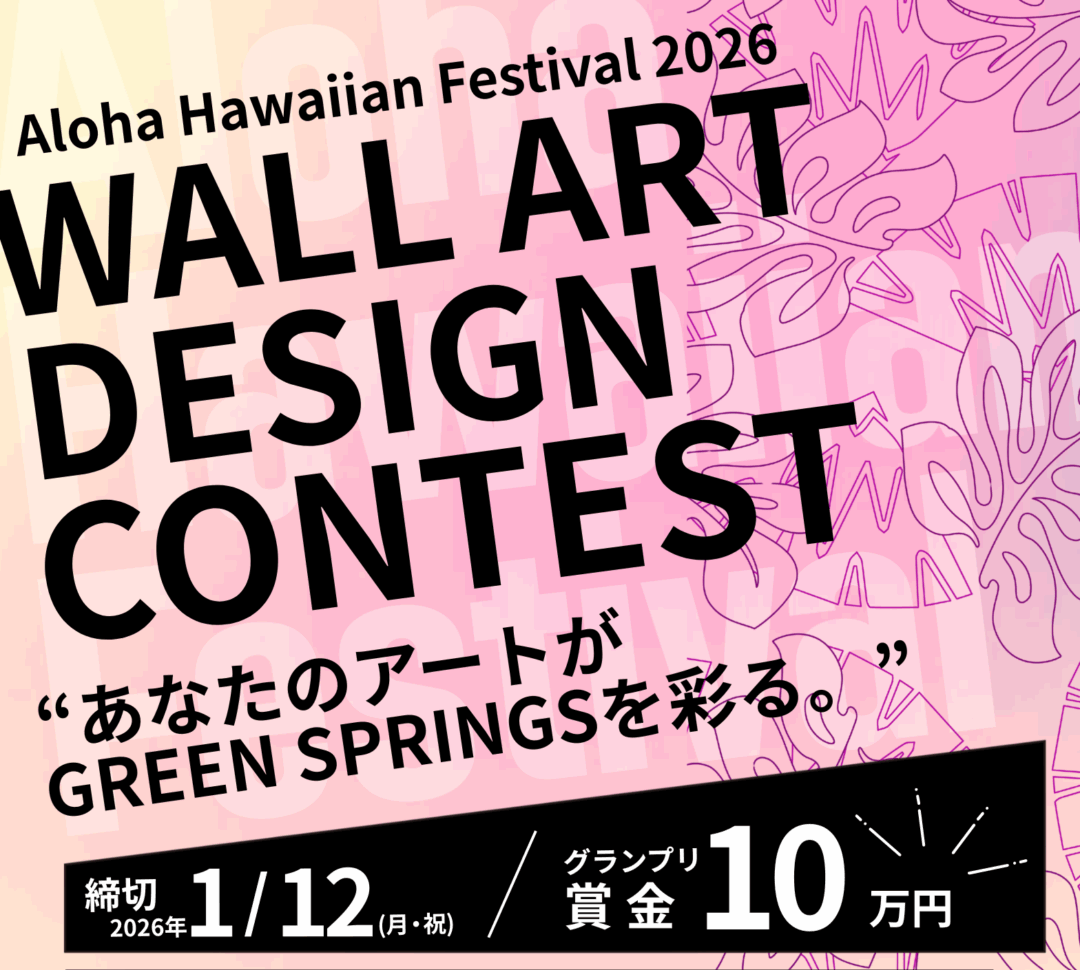 「Aloha Hawaiian Festival2026」の会場であるGREEN SPRINGSのカスケード壁面を彩る「ハワイアンと夏」をテーマとしたウォールアートデザインを募集します。