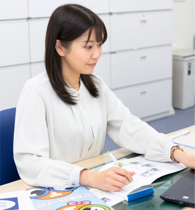 掲出する媒体に応じて広告の内容やデザイン案を考えたり、立飛グループのイメージキャラクターを普及させるためにノベルティグッズの企画発案などを行っています。