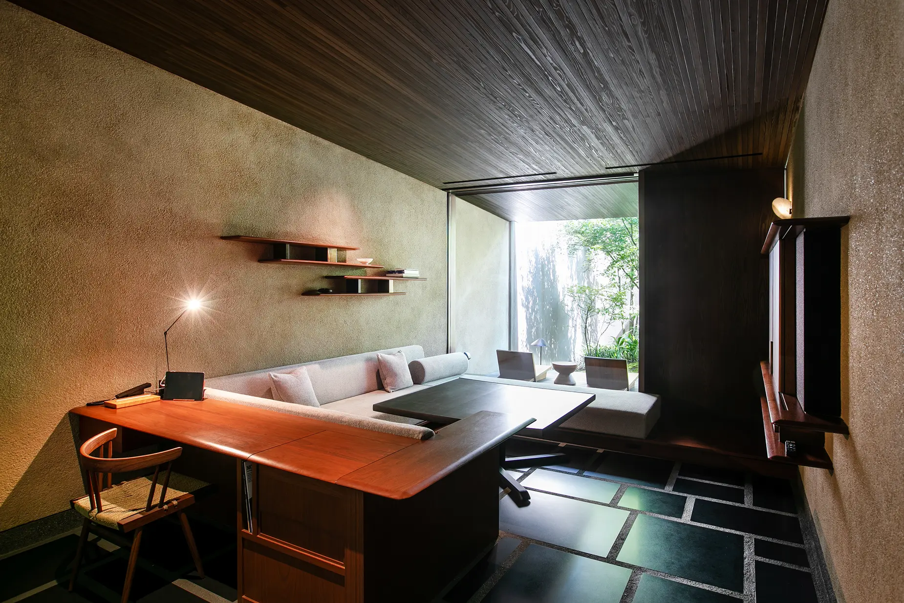 また、オーベルジュとして、チェックイン後、茶房で一息つき、やがてディナーへと向かう。時間の経過とともに場所を移し、異なる空気を味わっていただく。
